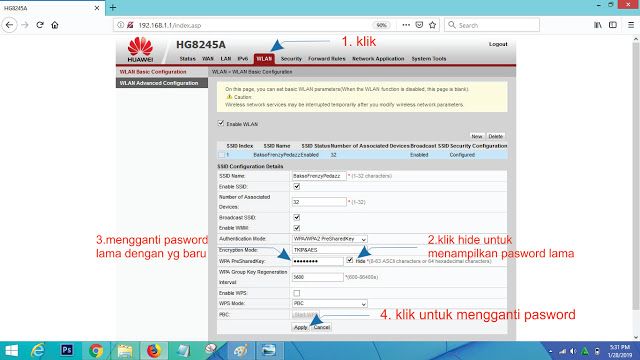 Tahapan-tahapan untuk mengganti pasword IndiHome modem Huawai.